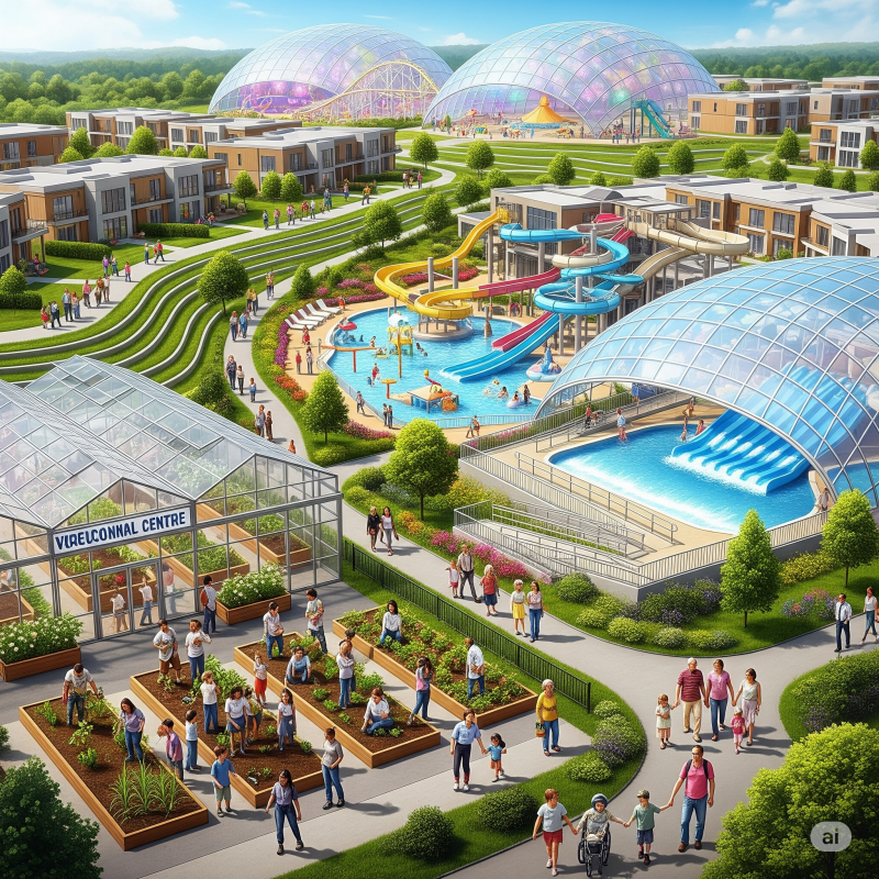 Urban hub focused on job training (retail/hospitality) and a sensory-friendly amusement park.